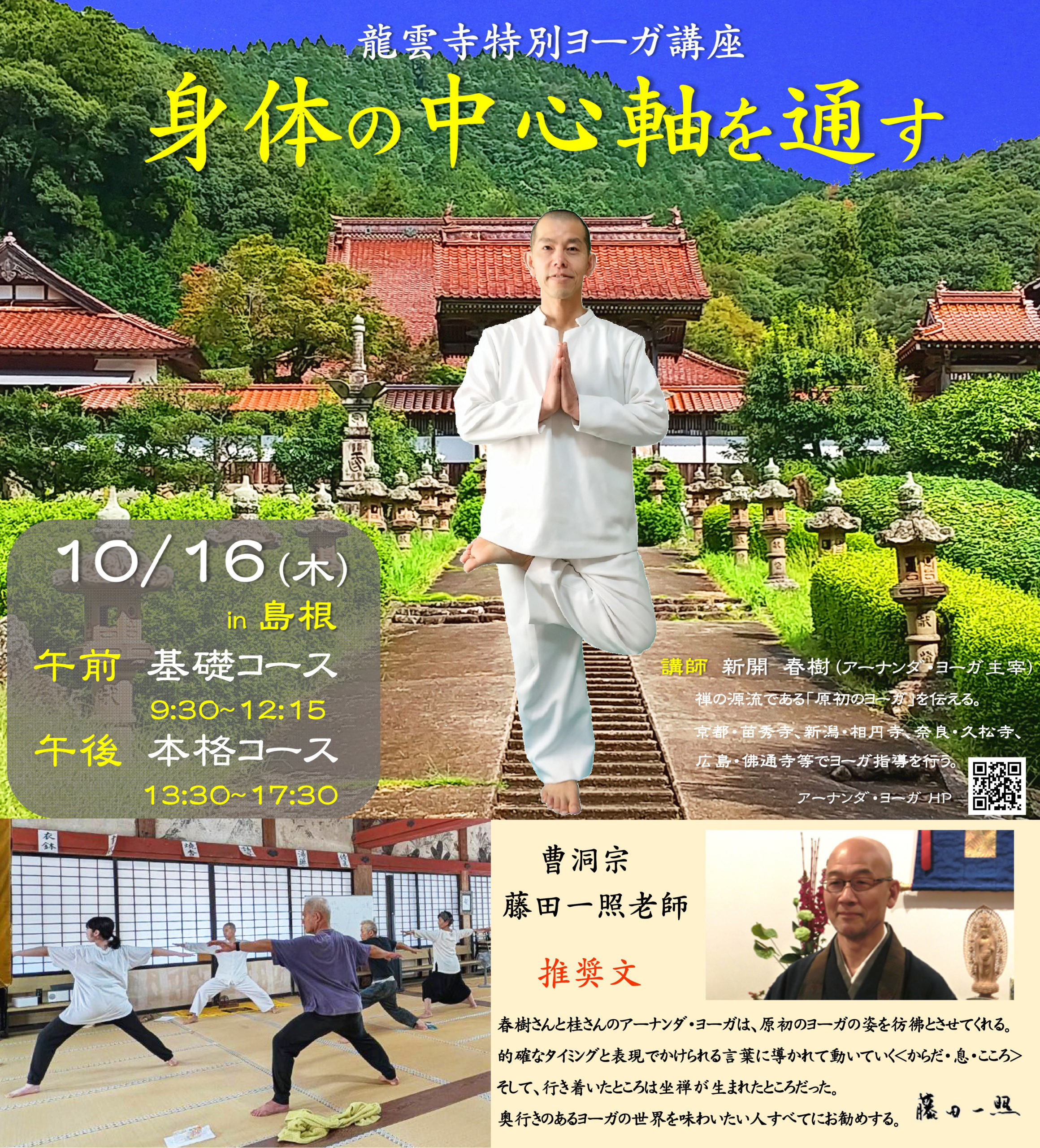 10/16(木)龍雲寺特別ヨーガ講座「身体の中心軸を通す」