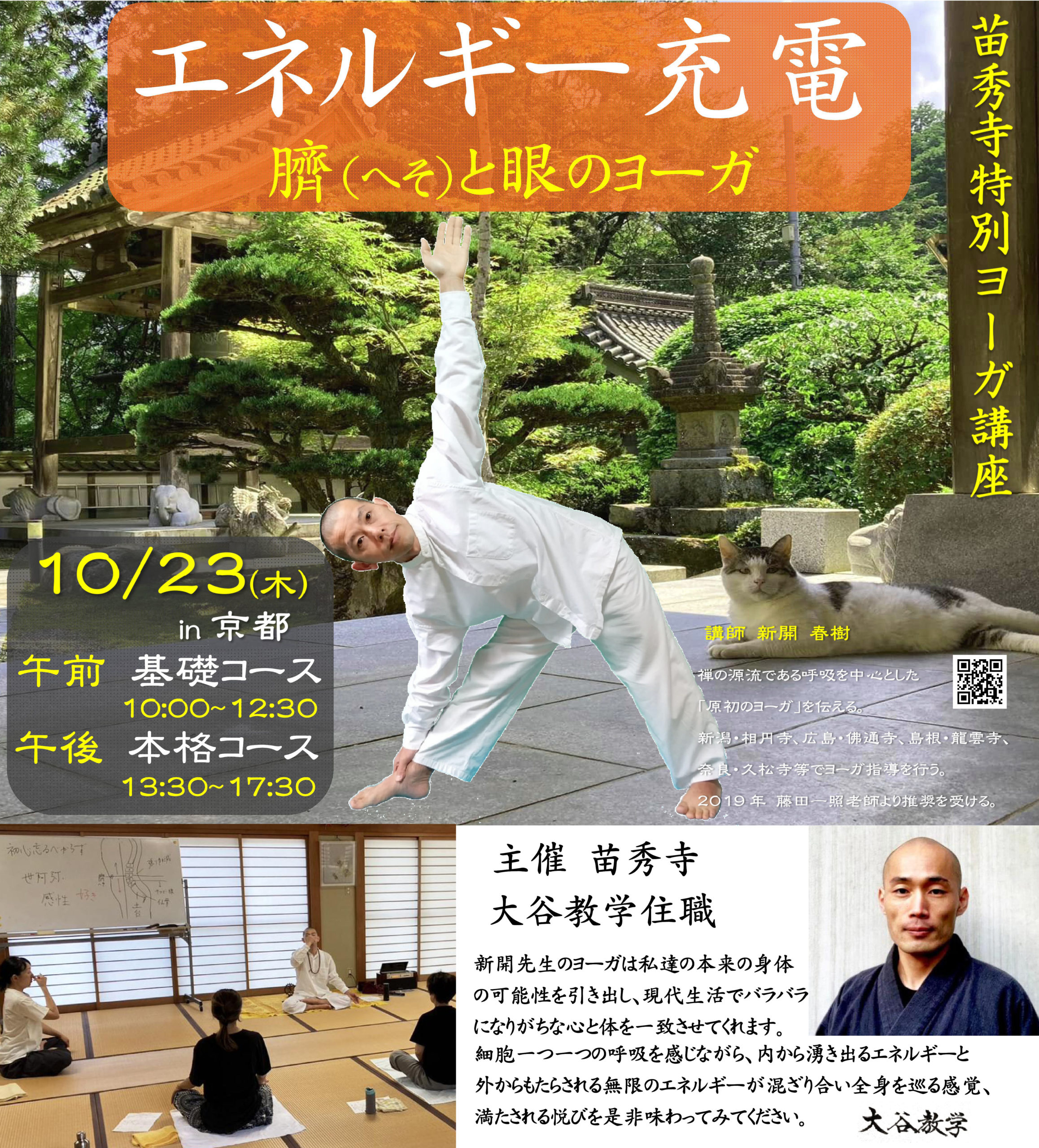 10/23(木)京都・苗秀寺特別ヨーガ講座「エネルギー充電」