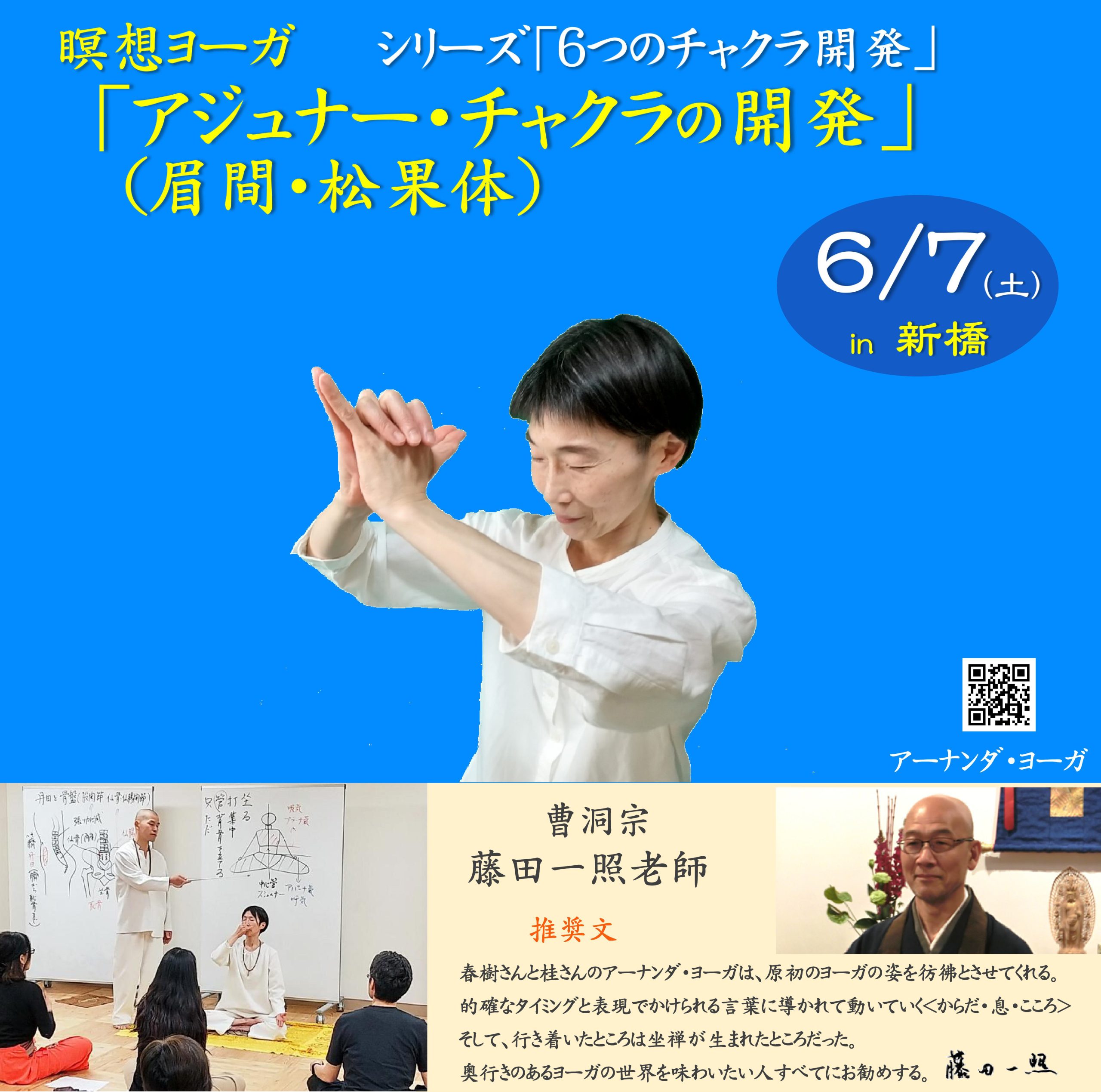 6/7(土)瞑想ヨーガ「アジュナー・チャクラ(眉間・松果体)の開発」のお知らせです。