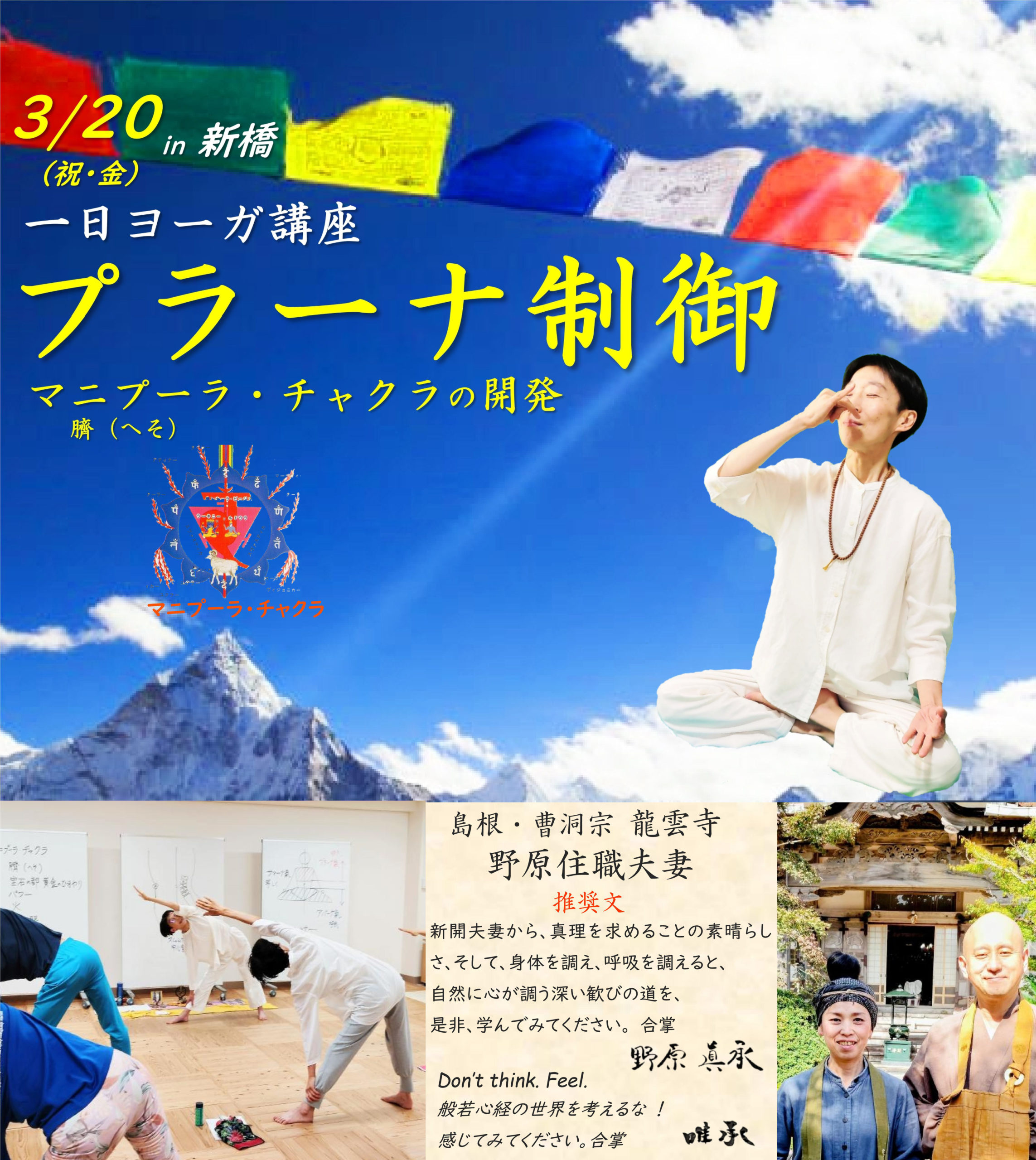 3/20(祝・金)一日ヨーガ講座「プラーナ制御」マニプーラ・チャクラの開発