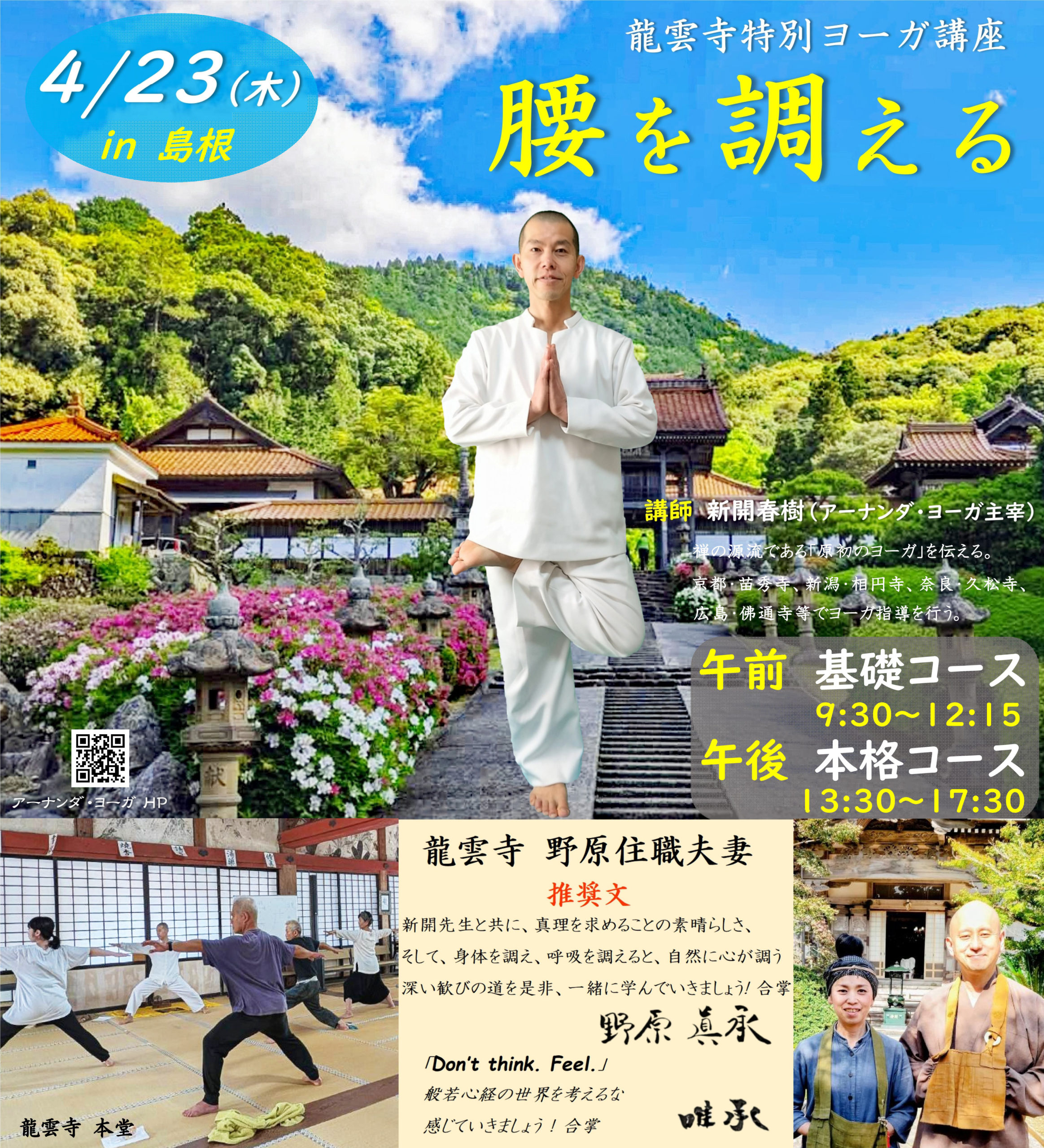 4/23(木)島根・龍雲寺特別ヨーガ講座